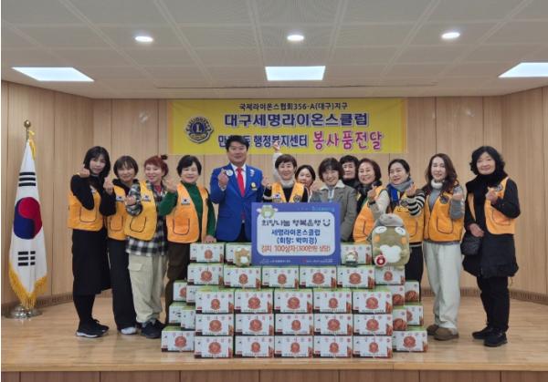 박미경 세명라이온스클럽 회장은 “작은 정성이지만 이웃들이 따뜻한 한 끼를 나누는 데 도움이 되길 바란다”며 “앞으로도 만촌1동과의 소중한 인연을 이어가며 꾸준한 나눔 활동을 실천하겠다”고 말했다.