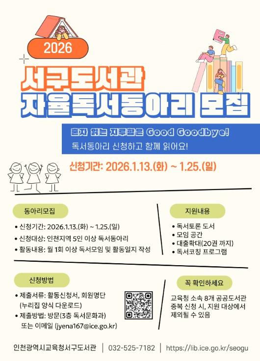 인천광역시교육청서구도서관, 2026년 자율독서동아리 모집