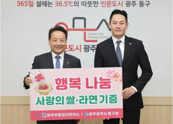 [한국제일신문, 윤진성기자] 광주 동구는 광주무등청년회의소가 지난 9일 지역 내 취약계층의 따뜻한 겨울나기 지원을 위해 백미와 라면을 후원했다고 밝혔다.