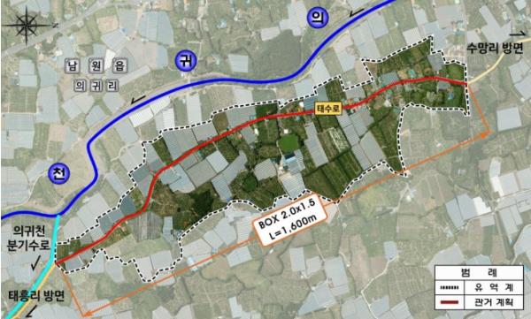 특히, 의귀1 재해위험개선지구 정비사업은 집중호우시 우수가 의귀천으로 유입되지 못해 태수로 주변 주거지와 농경지 저지대의 침수피해가 빈번하게 발생하는 곳으로 2028년까지 준공을 목표로 하고 있으며, 사업완료 시 263ha의 침수위험지역이 해소될 전망이다.