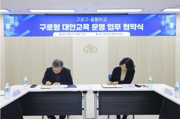 [한국제일신문, 김성옥기자] 구로구가 1월 12일 구청 소통홀에서 움틈학교와 ‘구로형 대안교육 운영’에 관한 업무협약을 체결하고, 이주배경 청소년을 위한 대안교육 지원 사업을 본격 추진한다. 이번 협약은 언어와 문화적 차이로 학업에 어려움을 겪는 청소년에게 안정적인 학습 기회를 제공하고 사회 적응을 돕기 위해 마련됐다.