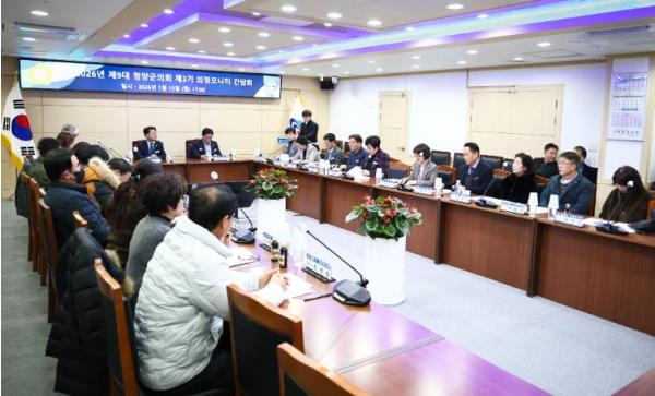 [한국제일신문, 김성옥기자] 청양군의회는 12일 군청 상황실에서 제3기 의정모니터위원 간담회를 열고, 지역 현안에 대한 군민 의견을 청취하며 의정 운영의 개선 방향을 함께 모색했다.
