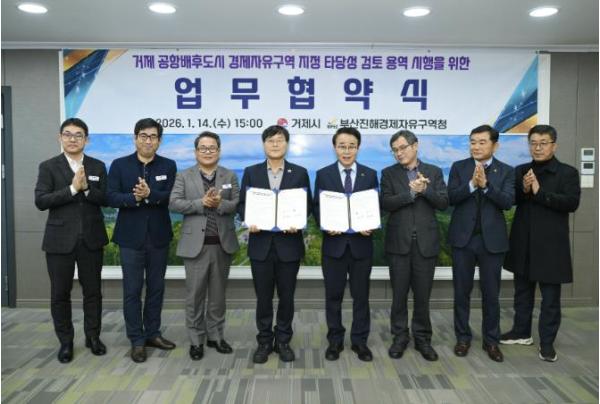 [한국제일신문, 김성옥기자] 거제시는 14일, 부산진해경제자유구역청(청장 박성호)과 경제자유구역 거제 확대를 위한 협력체계 구축 및 타당성 검토 용역 공동 추진을 위한 협약을 체결했다.
