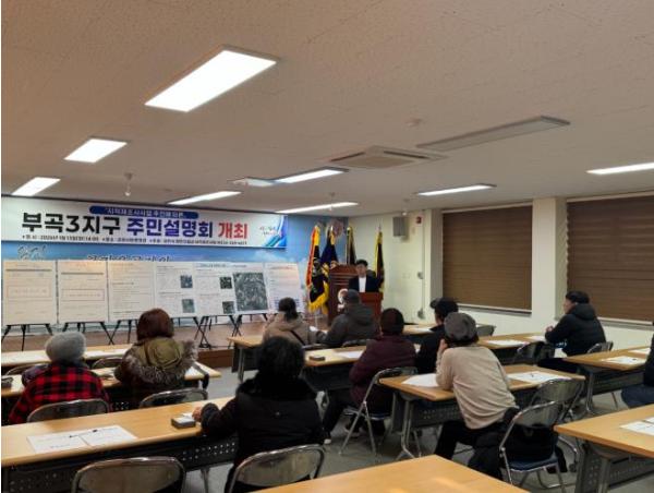 [한국제일신문, 김성옥기자] 김천시는 2026년 지적재조사사업 실시계획에 따른 사업지구 지정을 위하여 1월 13일 평화동 보훈회관에서 부곡3지구 토지소유자 및 이해관계인 등을 대상으로 주민설명회를 개최했다.