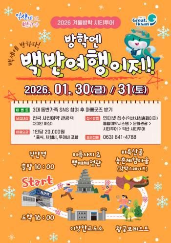 시 관계자는 "이번 시티투어는 겨울방학을 맞아 관광객들이 익산에서 특별한 추억을 만들 수 있도록 기획했다"며 "앞으로도 다양한 주제의 시티투어를 통해 관광객을 유치하고, 지역 경제에 활력을 더하겠다"고 밝혔다.