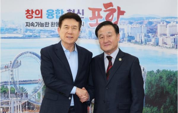 [한국제일신문, 김성옥기자] 포항 출신인 김용주 재경대구경북시도민회 회장 당선자가 15일 고향 포항을 방문해 이강덕 포항시장을 면담하고 지역 발전과 상생 협력 방안에 대해 논의했다.