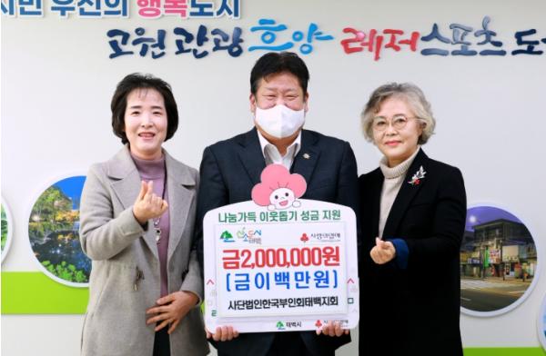 [한국제일신문, 김성옥기자] 태백시는 사단법인 한국부인회 태백지회(회장 김애숙)가 지난 15일 저소득 가구 및 소외계층을 위해 성금 200만 원을 기부했다고 밝혔다.