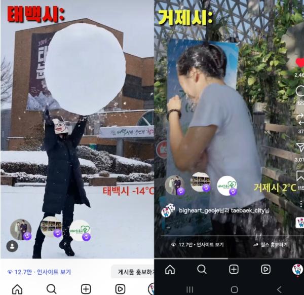 [한국제일신문, 김성옥기자] 거제시가 태백시와 협업해 제작한 홍보 영상이 인스타그램에서 게시 하루만에 조회수 10만회를 돌파하며 큰 관심을 받고 있다.