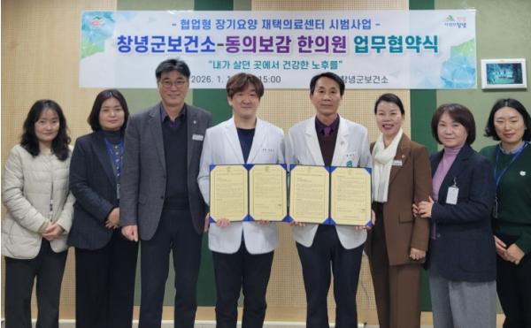 [한국제일신문, 김성옥기자] 창녕군은 지난 14일 동의보감 한의원과 장기요양 재택의료센터 시범사업 운영을 위한 업무협약(MOU)을 체결하고, 지역 내 의료 취약계층을 대상으로 한 재택의료 서비스를 본격 추진한다고 밝혔다.