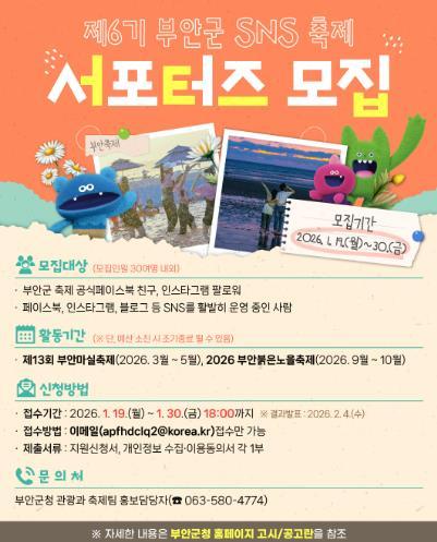 부안군, 제6기 부안군 SNS 축제 서포터즈 모집