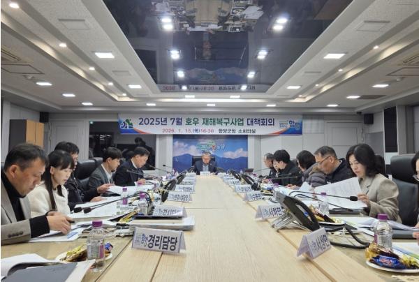 [한국제일신문, 김성옥기자] 함양군은 1월 15일 양상호 부군수 주재로 관계 공무원이 참석한 가운데, 2025년 7월 호우 재해복구사업의 신속한 추진을 위한 대책 회의를 개최했다.