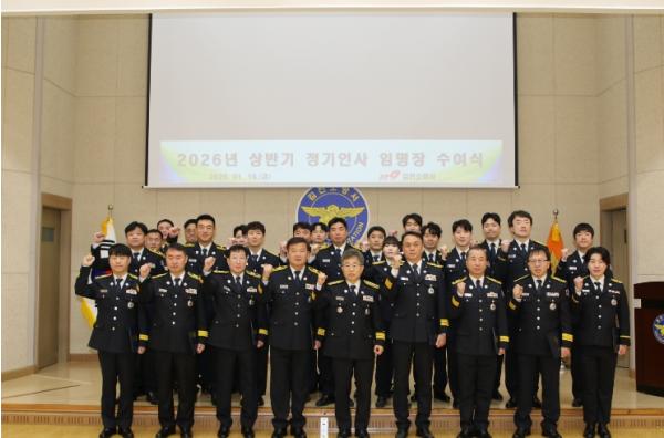 이번 임용식은 2026년 1월 정기인사에 따라 승진 및 전보된 소방공무원을 대상으로 진행됐으며, 임용장 수여와 함께 서장 당부 말씀 순으로 엄숙한 분위기 속에서 진행됐다.