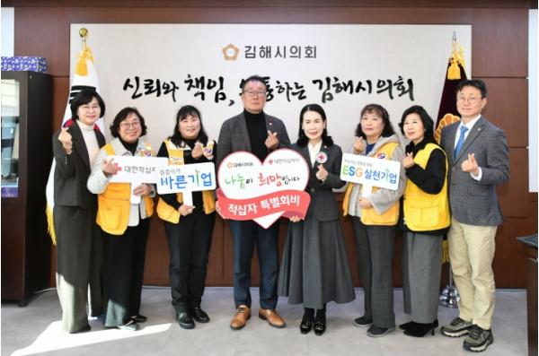 [한국제일신문, 김성옥기자] 김해시의회는 지난 16일 시의회 의장실에서 대한적십자사 경남지사에 2026년도 적십자 특별회비를 전달하며 어려운 이웃을 위한 따뜻한 나눔에 동참했다.