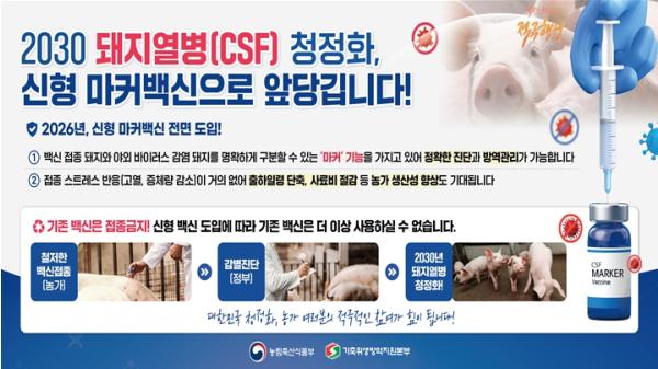 이번 백신 전환은 2030년 돼지열병 청정국 지위 확보를 목표로 한 국가 중장기 방역정책의 핵심 조치로, 야외바이러스 감염축과 백신 접종축을 구분할 수 있는 마커백신 도입을 통해 질병 발생 여부를 과학적으로 판별하고, 발생 시 신속한 대응이 가능하게 하기 위한 것이다.