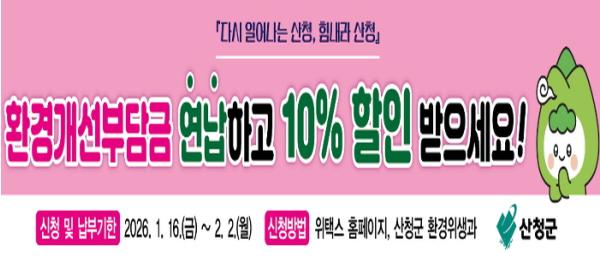산청군 관계자는 “환경개선부담금은 쾌적한 대기 환경 조성을 위한 재원인 만큼 적극적인 참여와 협조 바란다”고 말했다.