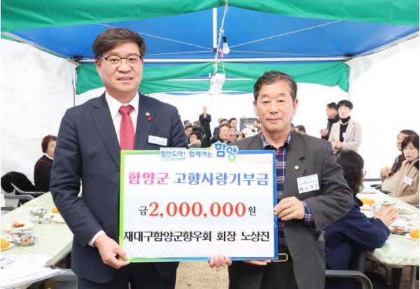노 회장은 “축제의 열기로 가득한 고향 함양에서 기부를 실천하게 되어 매우 뜻깊다”라며, “함양의 맛을 나누는 기쁨과 더불어, 이 기부가 함양 발전에 작은 보탬이 되길 바란다”라고 소감을 전했다.
