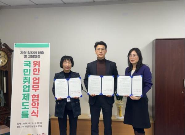 남원시는 1월 16일 오후 2시, 미래산업농정국장실에서 고용노동부 남원고용센터, 남원시일자리지원센터, 남원여성새로일하기센터 등 3개 기관이 참여한 가운데 2026년 국민취업지원제도 연계·협업체계 구축을 위한 업무협약을 체결했다.