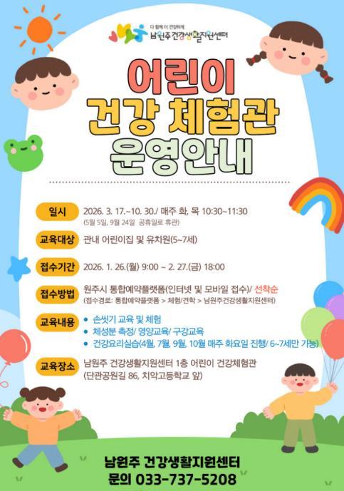남원주건강생활지원센터, 어린이 건강체험관 운영 안내