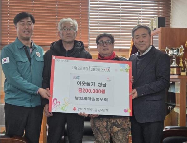 봉화새마을동우회(대표 조도묵)에서는 1월 19일 봉화읍사무소를 방문하여 “희망 2026 나눔 캠페인”에 동참하는 의미로 이웃돕기 성금 20만원을 기탁했다.