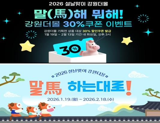 행사 기간 동안 강원더몰에서는 설 특판 상품을 한데 모은 기획전 전용관을 운영하고, 소비자의 구매 부담을 낮추기 위한 다양한 할인 및 참여형 이벤트를 마련했다.
