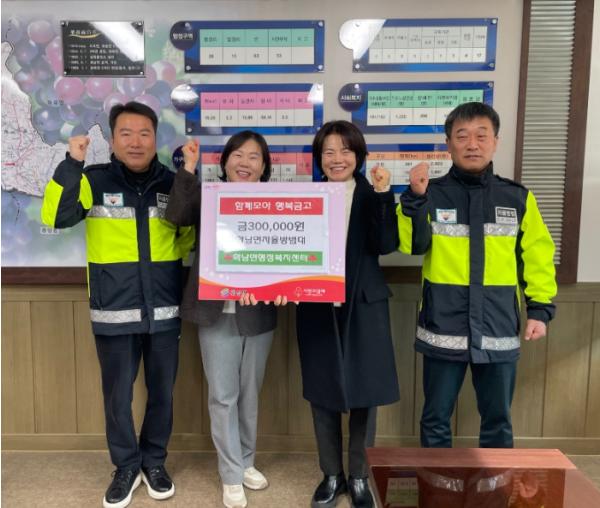 유정숙 화남면장은 “매년 지역의 어려운 이웃들을 위해 나눔을 실천해오고 있는 자율방범대에 깊이 감사드린다”며, “기탁해주신 성금은 도움이 필요한 이웃들에게 소중히 전달해 따뜻한 겨울을 보낼 수 있도록 하겠다”고 전했다.