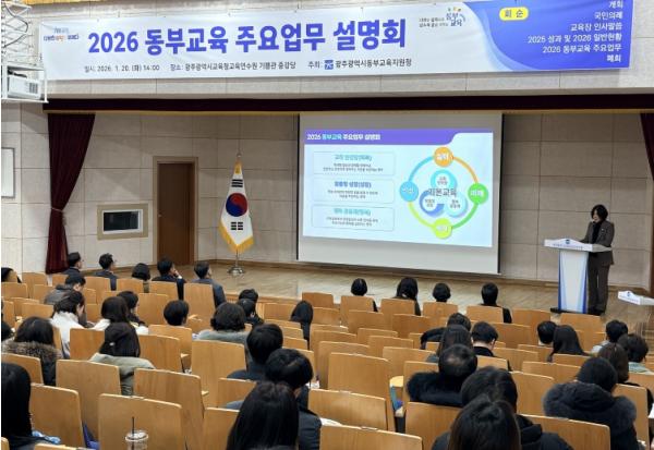 [한국제일신문, 윤진성기자] 광주동부교육지원청은 20일 광주시교육청교육연수원 중강당에서 ‘2026년 동부교육 설명회’를 개최했다.