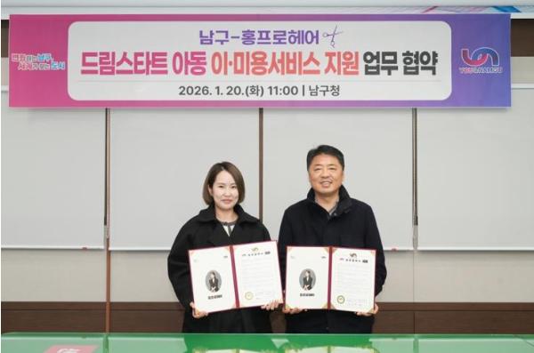 [한국제일신문, 김성옥기자] 부산 남구는 지난 1월 20일 대연동 소재 미용실 홍프로헤어와 드림스타트 아동 이·미용 서비스 지원을 위한 업무협약을 체결했다고 밝혔다.