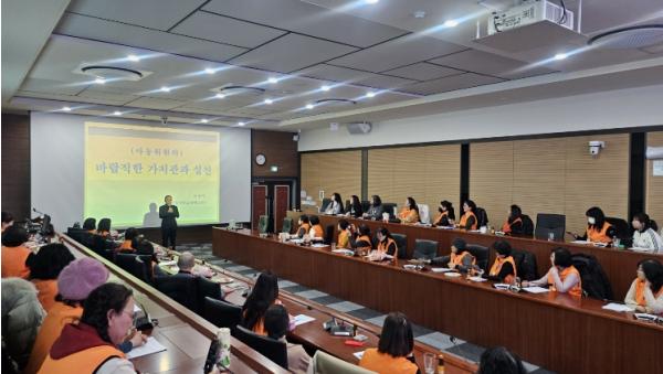 강사로 초빙된 한상덕 경상국립대학교 중어중문학과 명예교수는 ‘아동위원의 바람직한 가치관과 실천’이라는 주제로 아동을 바라보는 올바른 시각과 태도, 그리고 현장에서 실천해야 할 역할을 인문적 관점에서 설명하며 아동위원들의 바람직한 역할과 자세에 대한 인식 향상에 도움을 주었다.