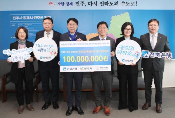 이 자리에서 전북은행은 전주시에 캠프 운영을 위한 총 1억 원의 성금을 전달했다.