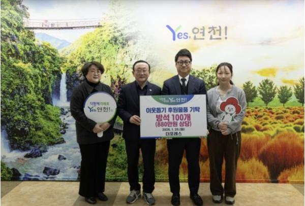 [한국제일신문, 김성옥기자] 연천군 소재 정부조달 물품 전문기업 더포레스는 지난 20일 연천군청을 방문해 지역 내 어려운 이웃의 생활환경 개선을 위해 880만원 상당의 방석 100개를 후원물품으로 기탁했다.