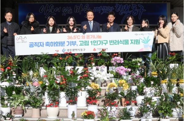 [한국제일신문, 윤진성기자] 광주 동구는 최근 인사이동 시 공직자들이 받은 축하 화분을 기부받아 고립 위기에 놓인 1인 가구에 반려식물로 전달하는 ‘인사이동 축하 화분 나눔 전달식’을 가졌다고 밝혔다.
