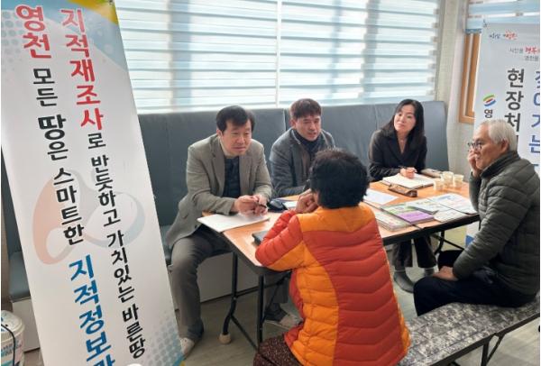 ‘찾아가는 지적민원 현장처리제’는 지적정보과를 중심으로 세정과, 종합민원과와 한국국토정보공사 영천지사가 함께 참여해 주민 생활 및 재산권과 밀접한 각종 지적·생활 민원을 마을 현장에서 접수·처리하는 현장 밀착형 행정서비스다.