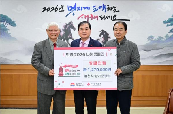 [한국제일신문, 김성옥기자] 김천시는 1월 19일 상이군경회 김천시지회(회장 선종두)로부터 희망2026나눔캠페인 성금 127만 원을 기탁받았다고 밝혔다.