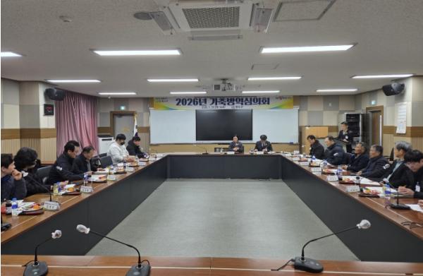 최근 인근지역 지역에서 ASF와 AI 발생에 따라 관내 가축질병유입 차단을 위한 방안대책을 논의하고 향후 청정 청도군을 지켜내기 위한 방역 대책에 동참하고자 결의했다. 회의에 참석한 양축농가 대표의 의견을 반영하여 2026년도 가축방역약품을 선정했다.