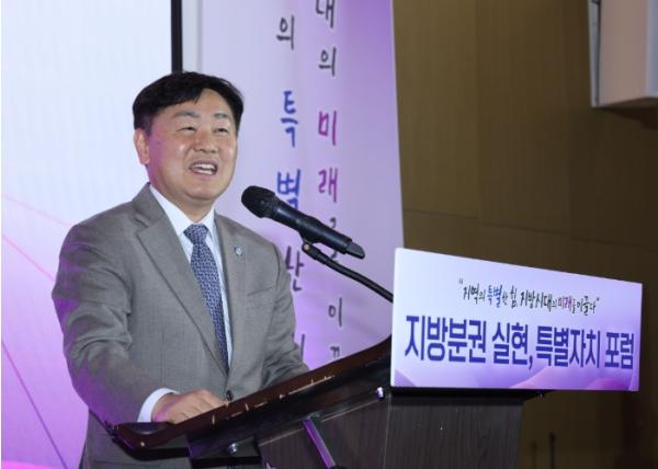 이어 “광역통합에 비해 4개 특별자치시도를 뒷방 신세나 잡아놓은 물고기처럼 대우해서는 안된다”고 피력하며, “행정통합에만 속도를 내지 말고 5극3특 완성의 국정과제 실현을 위해 4개 특별자치시·도의 규제해소와 특화성장을 위해 별도의 지원대책과 로드맵이 필요하고, 잘살아보겠다는 4개 시‧도의 신속한 법 개정을 요구한다”고 말했다.