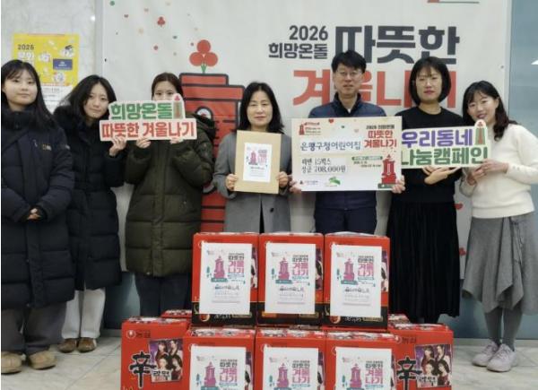 [한국제일신문, 김성옥기자] 서울 은평구 녹번동은 지난 14일 은평구청 어린이집과 ‘2026 희망온돌 따뜻한 겨울나기’ 성금·성품 전달식을 개최했다고 밝혔다.