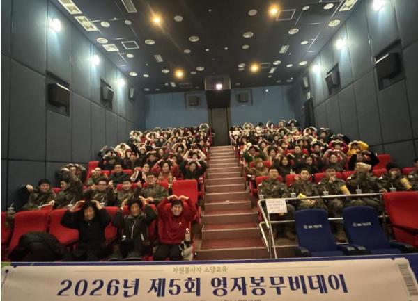 이번 교육은 제5회 ‘영자봉 무비데이’의 일환으로, 한 해 동안 재난·재해 수해복구를 비롯해 지역 행사 지원과 민원 도움 등 지역사회 문제 해결을 위해 헌신한 자원봉사자들의 노고를 격려하고 문화적 소양을 증진하기 위해 마련됐다.