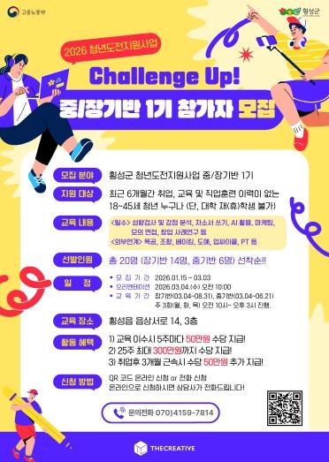 [한국제일신문, 김성광기자] 횡성군은 지역 청년들의 사회 진출과 성장을 지원하기 위해 ‘2026 청년도전지원사업’ 참여자를 모집한다고 밝혔다.