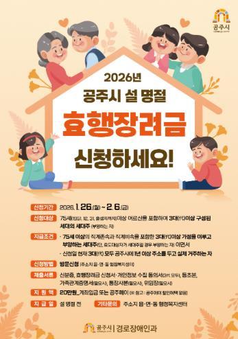 공주시, 설 명절 ‘효행장려금’ 20만원 지급