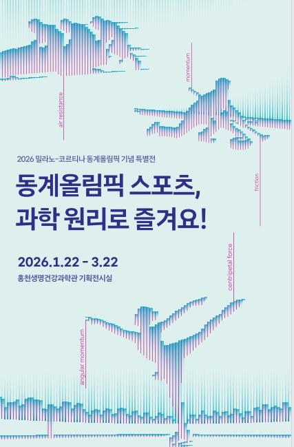 [한국제일신문, 김성옥기자] 홍천생명건강과학관은 2026 밀라노-코르티나 동계올림픽 개최를 계기로 동계 스포츠에 담긴 과학 원리를 쉽고 재미있게 풀어낸 기획전시 ‘동계올림픽 스포츠, 과학 원리로 즐겨요!’를 운영한다.