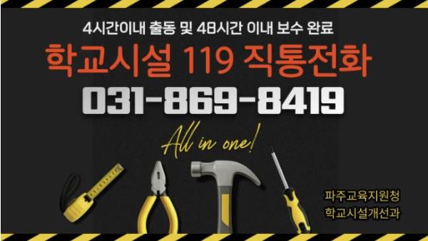 [한국제일신문, 김성옥기자] 파주교육지원청이 학교 현장의 시설 관리 부담을 덜기 위해 ‘학교시설 119’ 서비스를 2026년부터 대폭 강화한다고 21일 밝혔다. 이번 개편의 핵심은 ‘접근성’과 ‘신속성’이다.