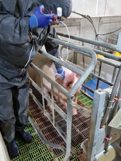 돼지열병은 고열과 피부청색증, 뒷다리를 제대로 쓰지 못하거나 비틀거리는 증상이 나타나는 질병으로, 한 번 발생하면 치료가 어려워 양돈농가에 큰 피해를 줄 수 있다.