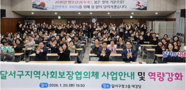[한국제일신문, 김성옥기자] 대구 달서구는 20일 달서구청에서 달서구지역사회보장협의체 위원 200여 명을 대상으로 '2026년 달서구지역사회보장협의체 사업안내 및 역량강화 교육'을 실시했다.