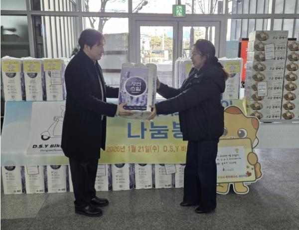 [한국제일신문, 김성옥기자] DSY바이크매니아가 지난 21일 동탄3동행정복지센터에 지역 내 어려운 이웃을 돕기 위해 롤휴지 100개와 전병 35박스를 기부했다.