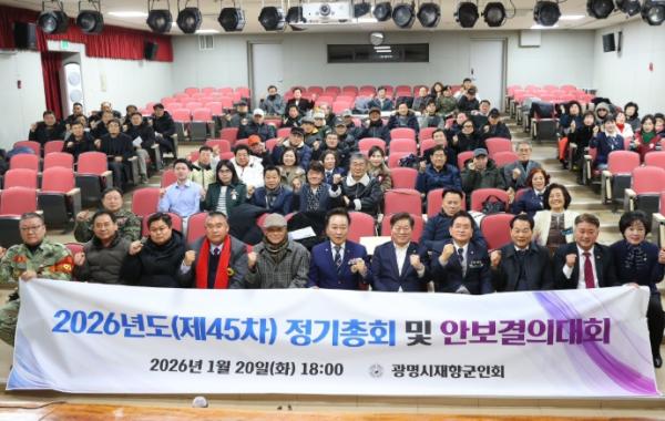 [한국제일신문, 홍영진기자] 광명시 재향군인회가 안보의식 함양과 향군회원 간 결속 강화를 위한 ‘2026년 정기총회 및 안보결의대회’를 개최했다.