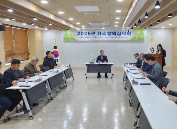 [한국제일신문, 김성옥기자] 성주군은 가축전염병 예방 및 방역대책 수립을 위해 2026. 1. 22. 14시 위원장 성주군 부군수 주재로, 구교철 축산단체협의회장 등 7개의 생산자단체들과 2026년 성주군 가축방역심의회를 개최했다.