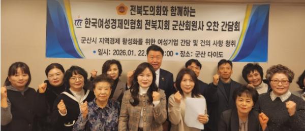 [한국제일신문, 김성옥기자] 전북도의회 김동구 의원(군산2)은 22일 한국여성경제인협회 전북지회 군산회원사들과 간담회를 개최해 기업 현안 및 애로사항을 청취하는 시간을 가졌다.