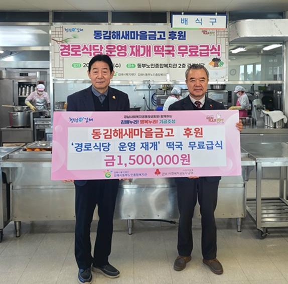 동김해새마을금고 후원, 경로식당 운영 재개 떡국 무료급식 금150만원 기탁