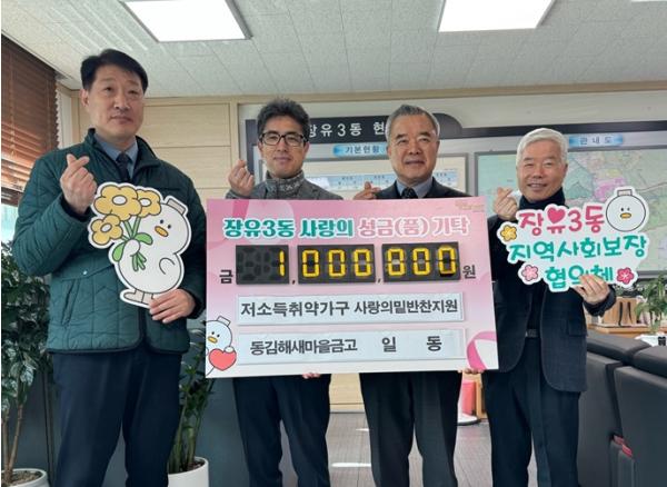 [한국제일신문, 김성옥기자] 김해시 장유3동행정복지센터에서는 지난 22일 동김해새마을금고(이사장 이강은)에서 장유3동 지역사회보장협의체 특화사업인 ‘사랑의 밑반찬 지원사업’에 사용해 달라며 100만원 상당의 밑반찬을 기탁했다고 밝혔다.