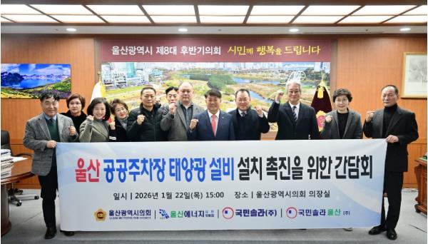 [한국제일신문, 김성옥기자] 울산광역시의회 이성룡 의장은 22일 의장실에서 ‘울산광역시 공공주차장 태양광 설비 설치 촉진을 위한 간담회’를 개최했다.